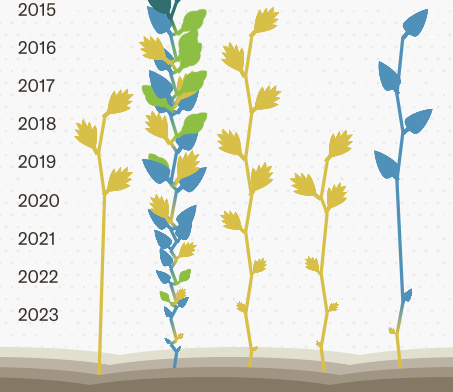 For a foundation impact narrative, we turned grant history into an explorable "garden" where each plant represents a grantee and growth shows support over time, making complex giving patterns feel intuitive and memorable.
