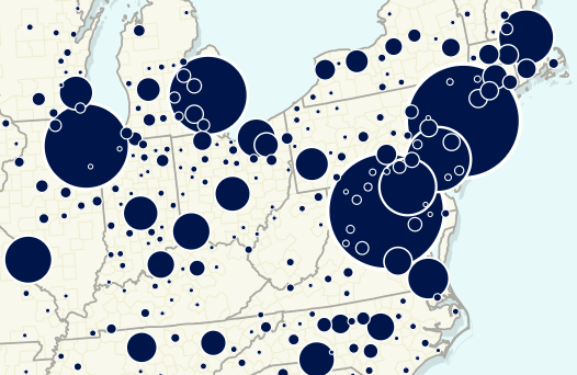 For geospatial analysis, we built a bivariate choropleth that lets analysts explore regional relationships between education levels and employment patterns, making multivariate geographic tradeoffs visible.